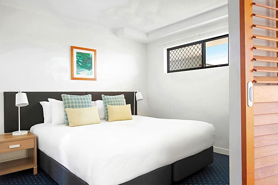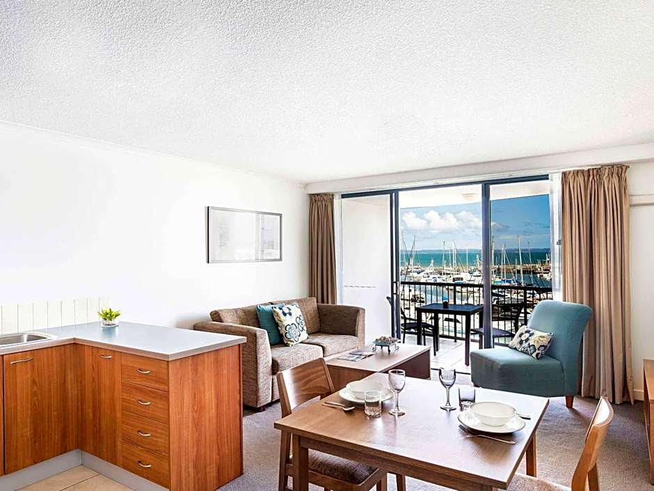 This spacious air-conditioned apartment features a spa bath and a private balcony overlooking the Marina. It also has a kitchenette with cooking and laundry facilities.